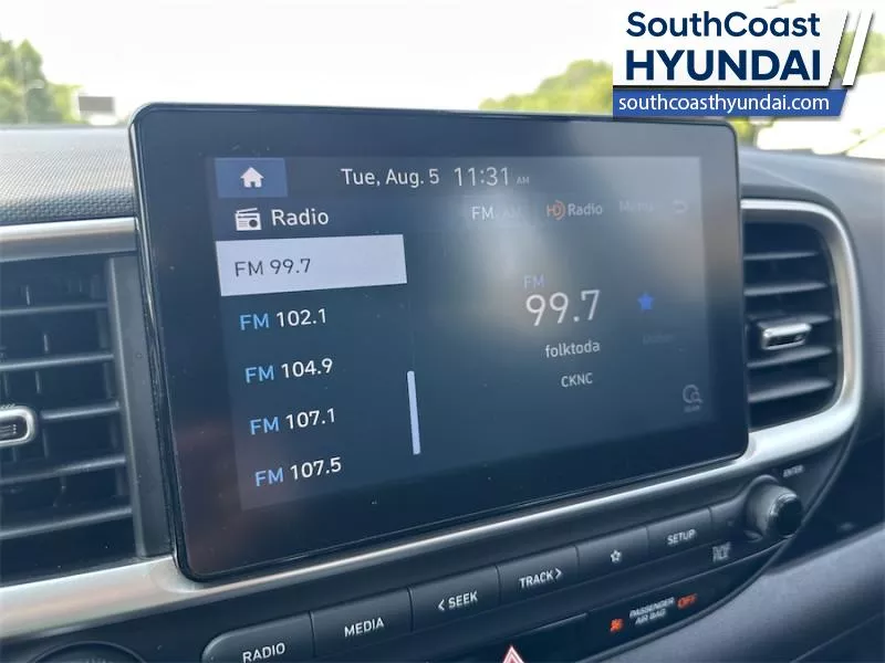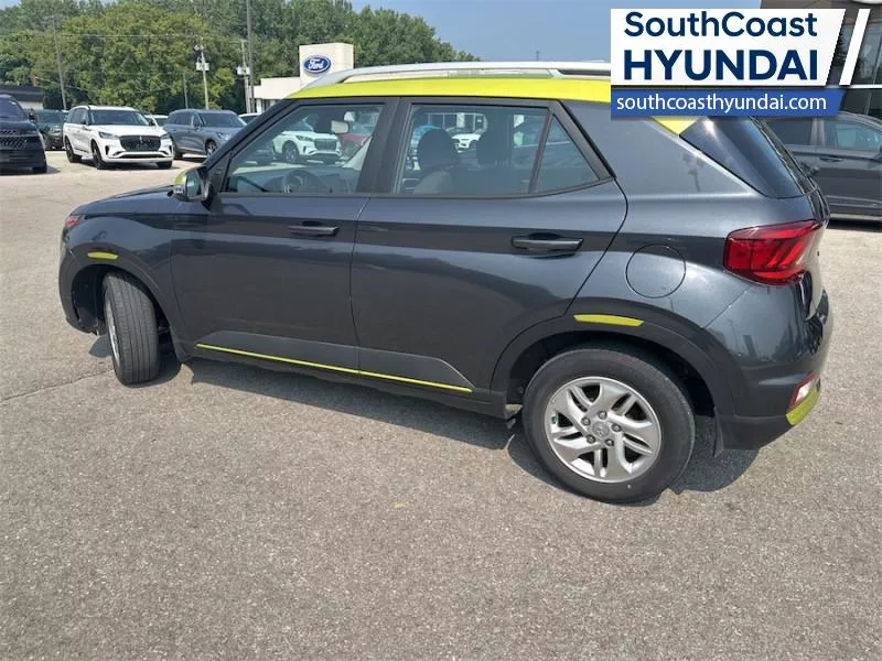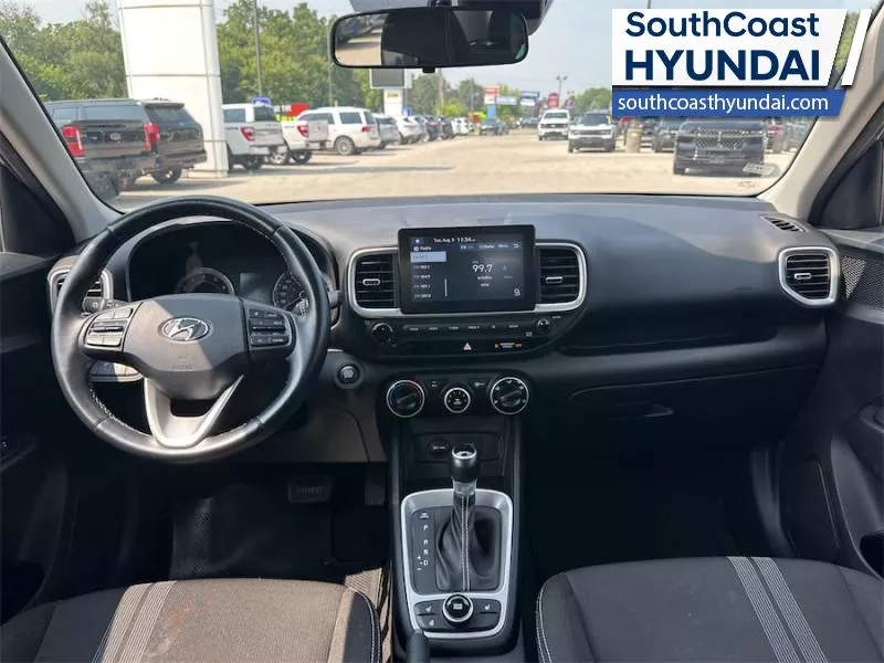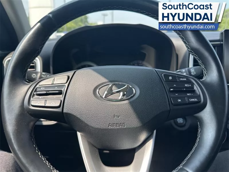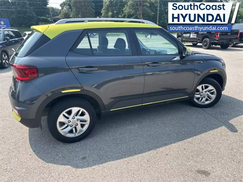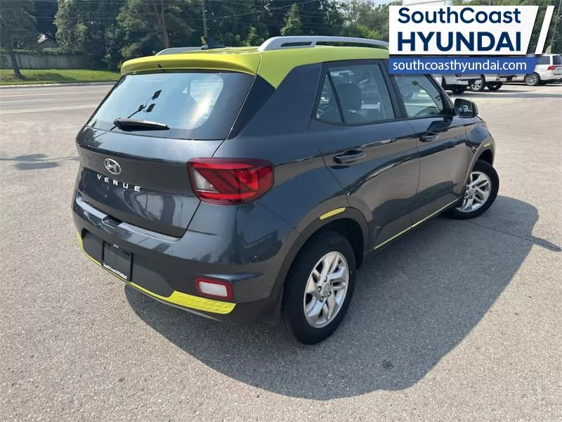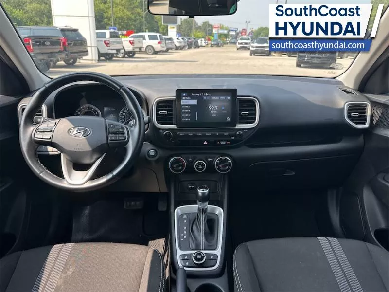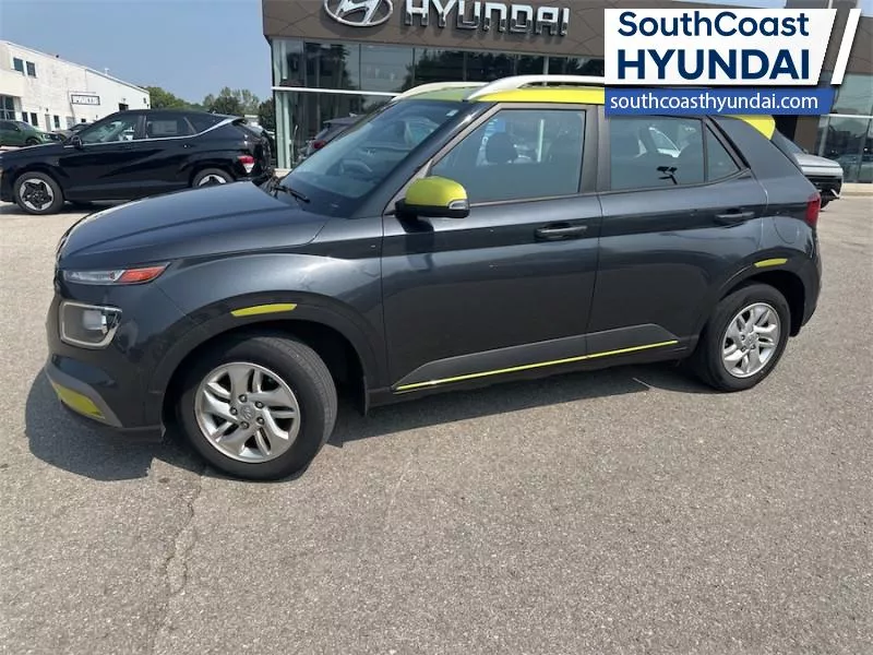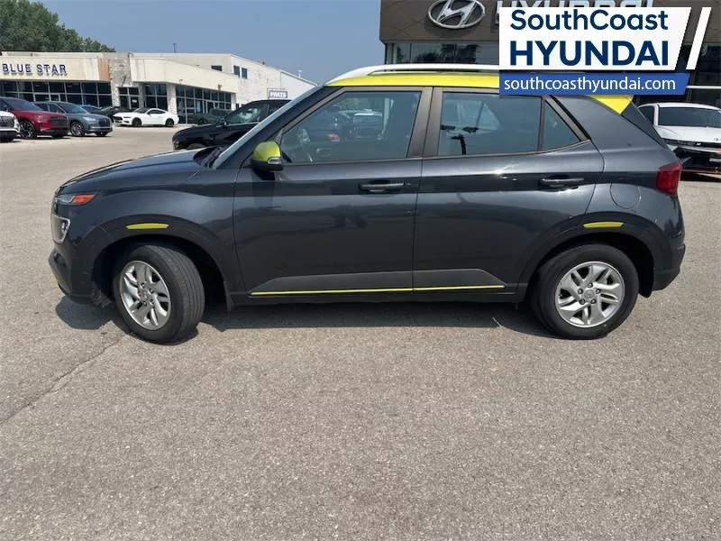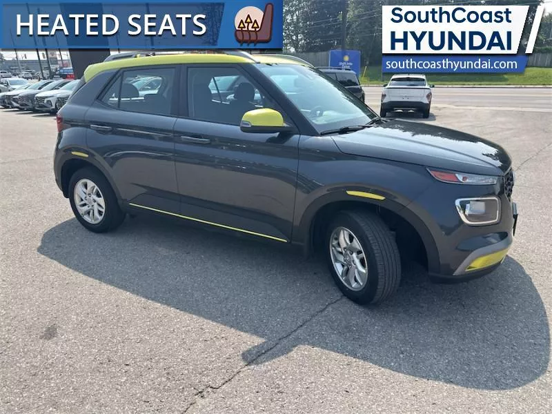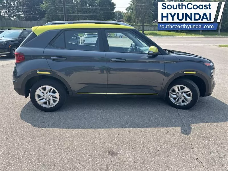 Our Venue's trim level is Preferred w/Two-Tone IVT. This two toned Venue Preferred comes lots of extra features over the base model Essential that includes blind spot awareness, rear cross-traffic collision warning and lane change assist, forward collision-avoidance assist, aluminum wheels, a heated steering wheel, proximity keyless entry system with remote start and drive mode select. You will also get 3 stage heated front seats, an 8 inch colour touch screen display with Android Auto and Apple CarPlay, a rearview camera, 60/40 split-fold rear seats, heated side mirrors, high beam assist and much more. This vehicle has been upgraded with the following features: Heated Seats, Heated Steering Wheel, Lane Change Assist, Forward Collision Assist, Aluminum Wheels, Apple Carplay, Android Auto.