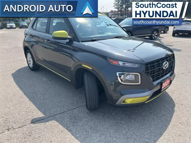 This 2021 Hyundai Venue is a smaller CUV that is big on modern style. With short overhangs making it easier to parallel park, a peppy yet fuel efficient engine and plenty of space for groceries, the Hyundai Venue makes for the best practical city sport-ute you can buy. This SUV has 94,953 kms and is a Certified Pre-Owned vehicle. It's grey in colour and is completely accident free based on the CARFAX Report . It has a cvt transmission and is powered by a 121HP 1.6L 4 Cylinder Engine. And it's got a certified used vehicle warranty for added peace of mind.