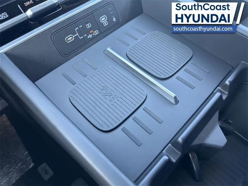 Our Santa Fe Hybrid's trim level is Preferred w/Trend Pkg. Standard features include a dual-panel sunroof, heated front seats with a heated steering wheel, adaptive cruise control, dual-zone climate control, smart device remote engine start, and a 12.3-inch infotainment screen with Apple CarPlay and Android Auto. Safety features also include lane keeping assist with lane departure warning, front and rear collision mitigation, blind spot collision, and front and rear parking sensors. This vehicle has been upgraded with the following features: Sunroof, Heated Seats, Heated Steering Wheel, Power Liftgate, Adaptive Cruise Control, Lane Keep Assist, Collision Mitigation.