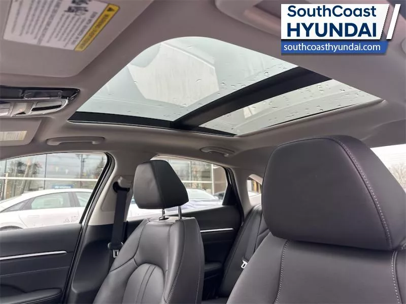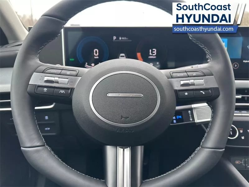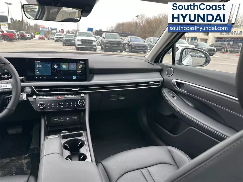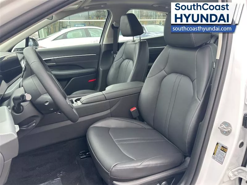 Our Sonata Hybrid's trim level is Preferred-Trend. The cabin focuses on premium comfort and advanced technology, highlighted by heated and ventilated front bucket seats with driver memory, leather seating surfaces, dual zone automatic climate control, a heated leather steering wheel, refined metal look interior accents, and a seamlessly integrated sliding and tilting glass sunroof that enhances openness for both rows. A 12.3 inch wide touchscreen with wireless Android Auto and Apple CarPlay, HD radio, Bluetooth, BlueLink connected services, smart trunk access, proximity key with push button start, remote start, wireless phone connectivity, turn by turn navigation, two front LCD monitors, selective service internet access, and a comprehensive driver information center deliver a highly connected experience. Safety protection is extensive with Lane Follow Assist, Lane Keep Assist with departure warning, Blind Spot Collision Warning, Rear Cross Traffic Collision Avoidance Assist, Forward Collision Avoidance Assist with pedestrian, cyclist, and junction turning detection, Driver Monitoring Alert, multiple front, side, rear side impact, curtain, and knee airbags, child safety locks, a tire pressure monitoring system, and a back up camera. This vehicle has been upgraded with the following features: Leather Seats.