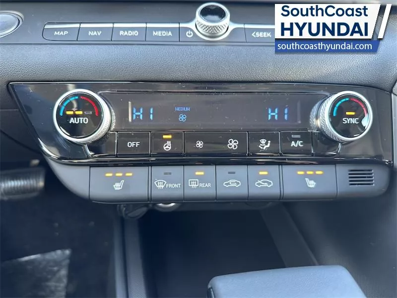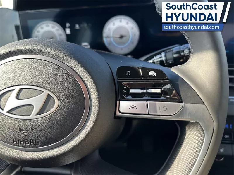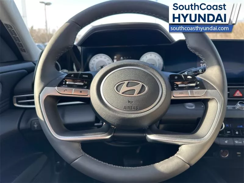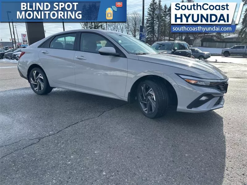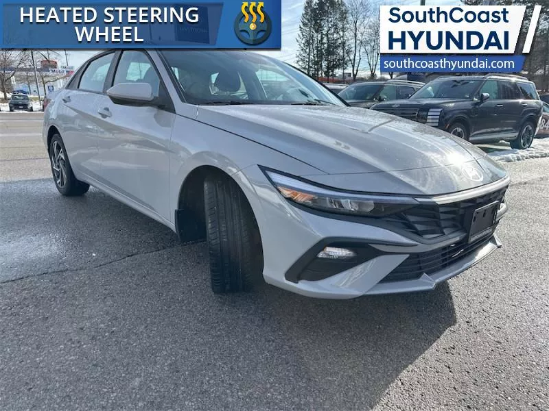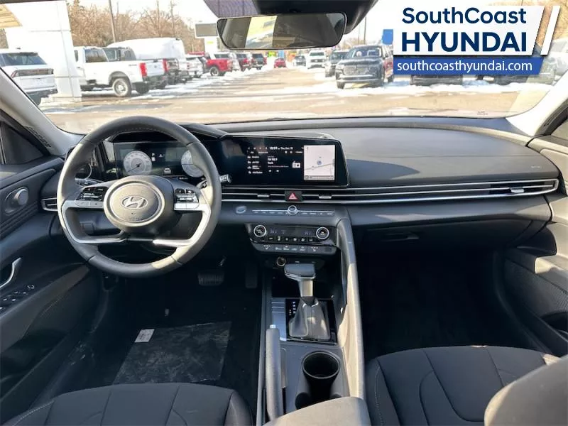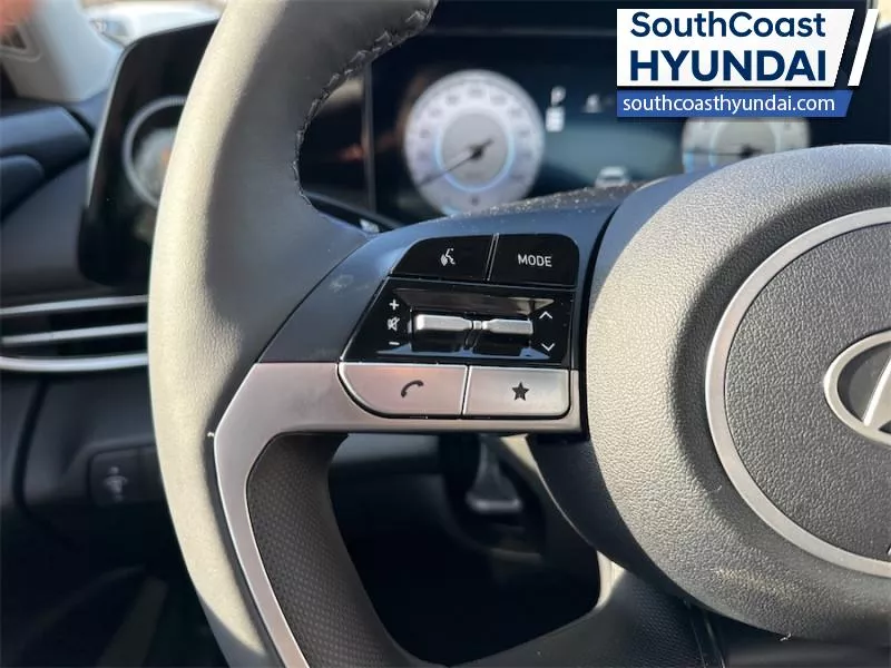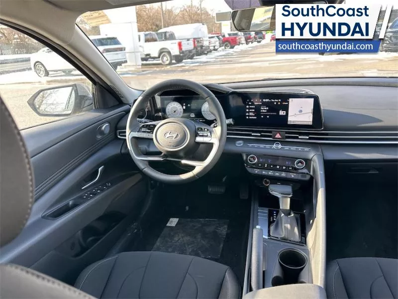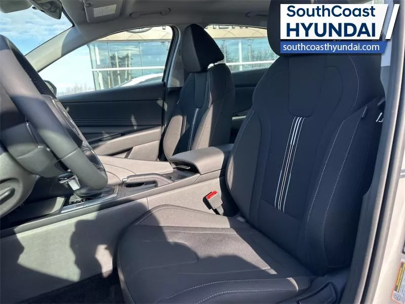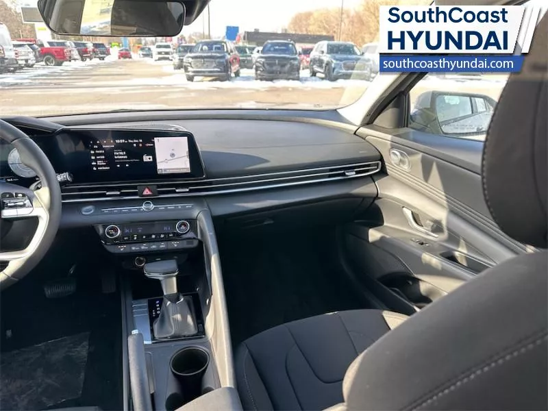 Our Elantra's trim level is Preferred w/Tech Pkg. The interior focuses on comfort and convenience with heated front bucket seats, premium tricot cloth upholstery, a heated leather steering wheel, and dual zone automatic climate control. Technology is anchored by a 10.25 inch touchscreen navigation system with Android Auto, Apple CarPlay, Bluetooth with voice recognition, BlueLink telematics, USB connectivity, wireless phone integration, smart device remote start, and two front LCD monitors. The cabin also includes smart trunk proximity access, power windows with driver one touch up/down, selective service internet access, integrated navigation voice activation, ample storage, and full interior lighting with fade to off functionality. Safety coverage is extensive with forward collision avoidance assist with pedestrian detection, blind spot collision warning, rear cross traffic collision avoidance assist, lane keeping assist, lane follow assist, driver monitoring alert, emergency SOS capability, a full suite of airbags including rear side impact coverage, stability and traction control, tire pressure monitoring, child safety locks, and a backup camera. This vehicle has been upgraded with the following features: Sunroof, Navigation, Heated Seats, Heated Steering Wheel, Blind Spot Warning, Remote Start, Lane Keep Assist.