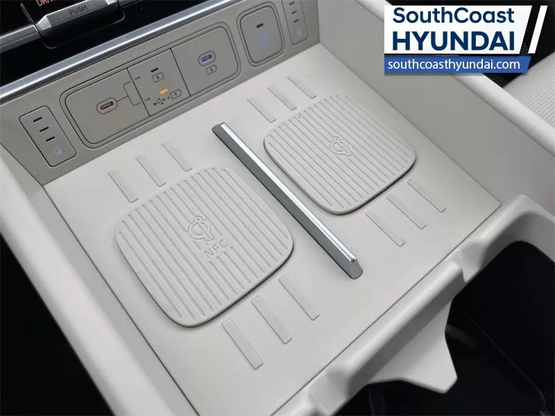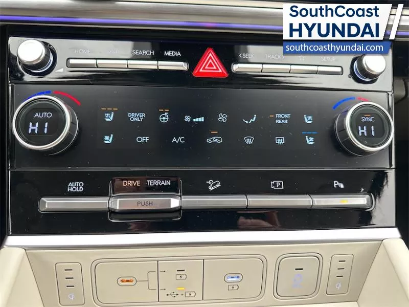 Our Santa Fe Hybrid's trim level is Ultimate Calligraphy. Blending elegant design with cutting-edge innovation, this refined SUV delivers an exceptional balance of comfort, technology, and all-weather confidence. Its sleek exterior stands out with LED lighting, a panoramic sunroof, power liftgate, and dark chrome accents that enhance its upscale presence. Inside, the cabin pampers with Nappa leather seating, heated and ventilated front seats with relaxation mode, dual-zone climate control, and a premium Bose audio system with 12 speakers for an immersive listening experience. The expansive 12.3-inch touchscreen with navigation, Android Auto, Apple CarPlay, and Bluelink connectivity ensures effortless control and entertainment. Advanced safety features like Blind-Spot Collision-Avoidance Assist, Surround View Monitor, Remote Smart Parking, and Forward Collision-Avoidance Assist provide peace of mind, making every drive more secure and stress-free. This vehicle has been upgraded with the following features: Leather Seats.