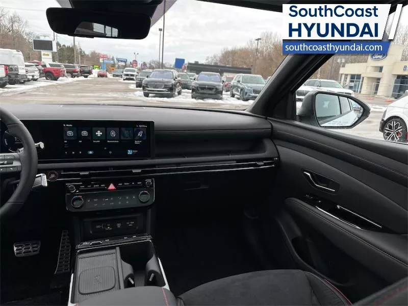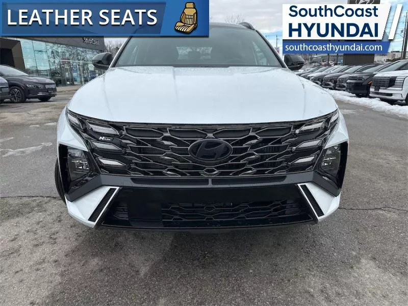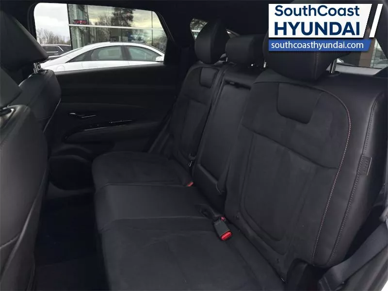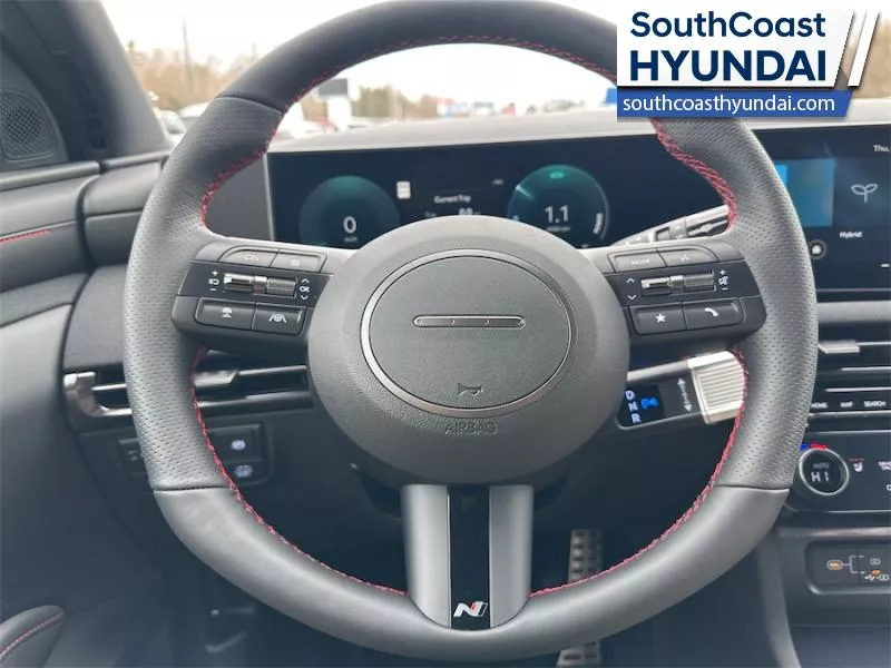Our Tucson Hybrid's trim level is N-Line. The cabin focuses on comfort with heated front bucket seats, an 8 way power adjustable driver's seat with lumbar support, N Line suede and leather upholstery, dual zone climate control, and versatile 60/40 folding heated rear seats, enhanced by the expansive first and second row sunroof that brings extra light into the interior without isolating it as its own sentence. Technology is comprehensive with a 12.3 inch infotainment display supporting Android Auto and Apple CarPlay, Bluetooth connectivity, BlueLink services, smart device remote start, proximity key with push button start, HomeLink, and a fully digital driver information system, with an 8-speaker Bose premium audio system. Safety features include Forward Collision Avoidance Assist with pedestrian, cyclist, and junction turning detection, Blind Spot Collision Warning, Lane Keeping Assist, Rear Cross Traffic Collision Avoidance Assist, Driver Monitoring Alert, a full airbag suite, stability and traction systems, and a rear view monitor. This vehicle has been upgraded with the following features: Leather Seats.
