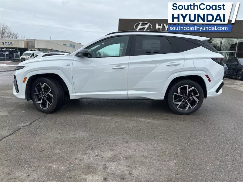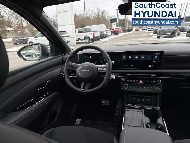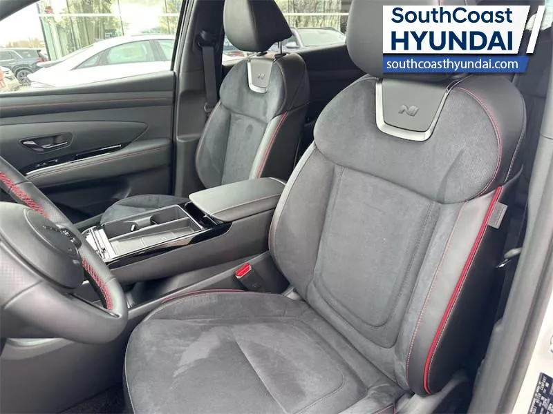 Our Tucson Hybrid's trim level is N-Line. The cabin focuses on comfort with heated front bucket seats, an 8 way power adjustable driver's seat with lumbar support, N Line suede and leather upholstery, dual zone climate control, and versatile 60/40 folding heated rear seats, enhanced by the expansive first and second row sunroof that brings extra light into the interior without isolating it as its own sentence. Technology is comprehensive with a 12.3 inch infotainment display supporting Android Auto and Apple CarPlay, Bluetooth connectivity, BlueLink services, smart device remote start, proximity key with push button start, HomeLink, and a fully digital driver information system, with an 8-speaker Bose premium audio system. Safety features include Forward Collision Avoidance Assist with pedestrian, cyclist, and junction turning detection, Blind Spot Collision Warning, Lane Keeping Assist, Rear Cross Traffic Collision Avoidance Assist, Driver Monitoring Alert, a full airbag suite, stability and traction systems, and a rear view monitor. This vehicle has been upgraded with the following features: Leather Seats.