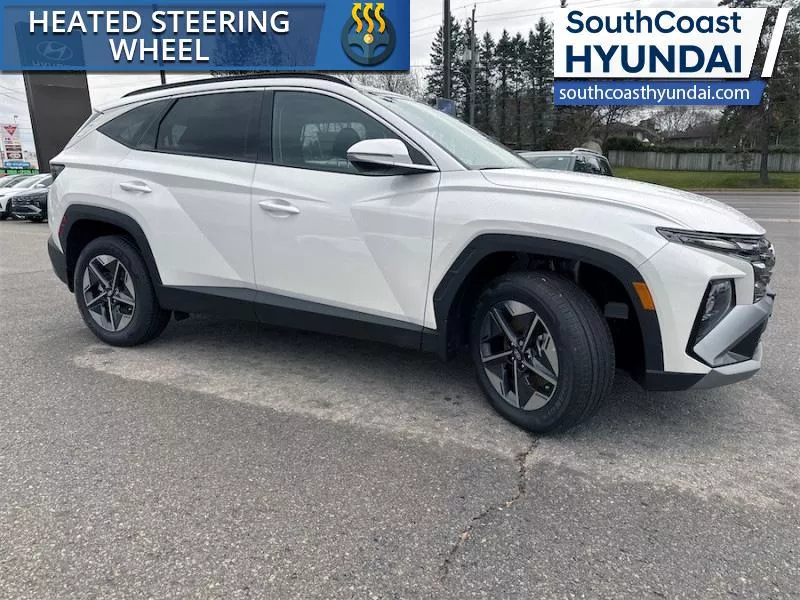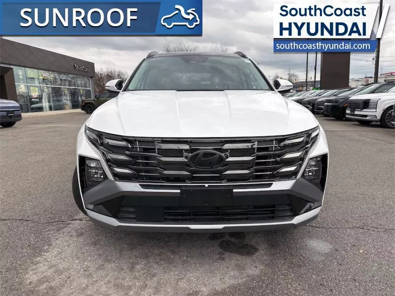 Our Tucson's trim level is Preferred AWD w/Trend Pkg. The cabin emphasizes comfort with heated front bucket seats, an 8 way power adjustable driver's seat with lumbar support, a heated leather steering wheel, dual zone climate control, flexible 60/40 folding rear seats, and smart storage throughout, while the expansive glass first and second row sunroof with power sunshade enhances the interior's open feel. Technology is anchored by a 12.3 inch infotainment display with Android Auto and Apple CarPlay, Bluetooth, BlueLink services, wireless phone connectivity, real time traffic, turn by turn navigation, adaptive cruise control, proximity key with push button start, and smart device remote start. Safety features include Forward Collision Avoidance Assist with pedestrian, cyclist, and junction turning detection, Blind Spot Collision Warning, Lane Keeping Assist, Rear Cross Traffic Collision Avoidance Assist, Driver Monitoring Alert, multiple airbags, stability and traction systems, and a rear view monitor. This vehicle has been upgraded with the following features: Sunroof, Power Liftgate, Heated Seats, Heated Steering Wheel, Adaptive Cruise Control, Remote Start, Lane Keep Assist.