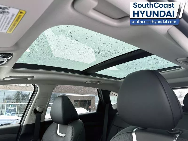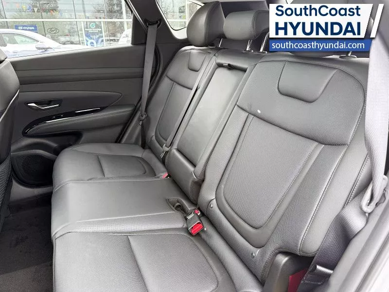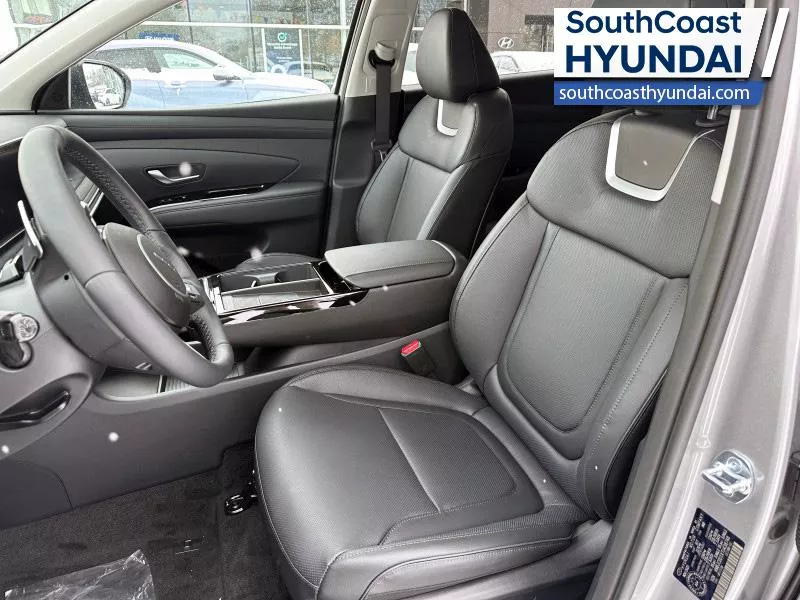 Our Tucson Hybrid's trim level is Ultimate. The cabin emphasizes comfort and technology with heated and ventilated front bucket seats, leather trim, a heated steering wheel, dual-zone automatic climate control, a head-up display, integrated navigation, wireless phone connectivity, and a premium 8-speaker Bose audio system. A panoramic glass sunroof with a power sunshade is incorporated early into the interior experience and complements the spacious seating configuration, smart key access, adaptive cruise control, memory settings, and extensive storage solutions. Safety is comprehensive with blind-spot warning, rear cross-traffic avoidance, forward collision-avoidance assist, lane keeping assist, multiple airbags including rear side-impact protection, a tire-pressure monitoring system, and advanced parking sensors integrated into a full surround-view monitoring suite. This vehicle has been upgraded with the following features: Leather Seats.