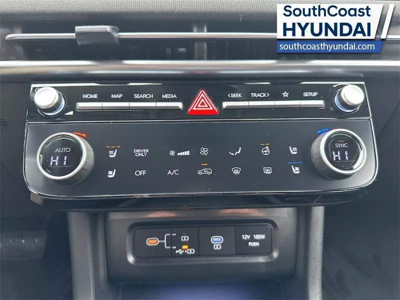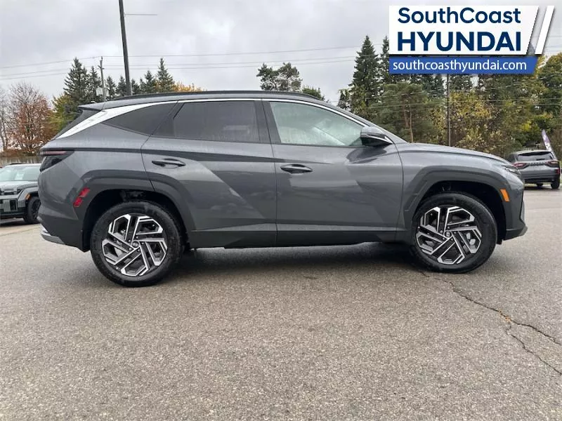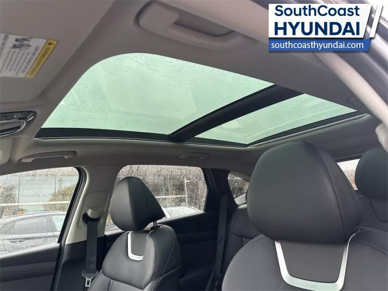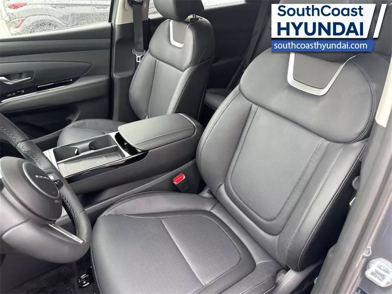 Our Tucson Hybrid's trim level is Ultimate. The cabin emphasizes comfort and technology with heated and ventilated front bucket seats, leather trim, a heated steering wheel, dual-zone automatic climate control, a head-up display, integrated navigation, wireless phone connectivity, and a premium 8-speaker Bose audio system. A panoramic glass sunroof with a power sunshade is incorporated early into the interior experience and complements the spacious seating configuration, smart key access, adaptive cruise control, memory settings, and extensive storage solutions. Safety is comprehensive with blind-spot warning, rear cross-traffic avoidance, forward collision-avoidance assist, lane keeping assist, multiple airbags including rear side-impact protection, a tire-pressure monitoring system, and advanced parking sensors integrated into a full surround-view monitoring suite. This vehicle has been upgraded with the following features: Leather Seats.
