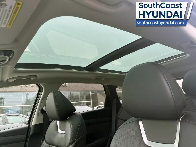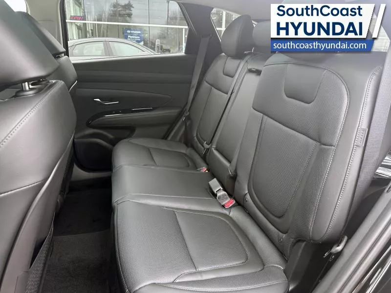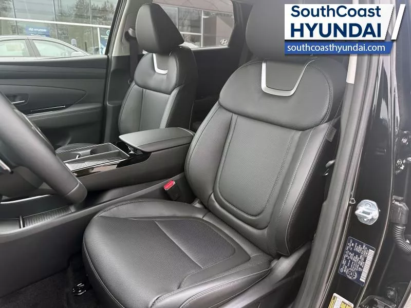 Our Tucson Hybrid's trim level is Ultimate. The cabin emphasizes comfort and technology with heated and ventilated front bucket seats, leather trim, a heated steering wheel, dual-zone automatic climate control, a head-up display, integrated navigation, wireless phone connectivity, and a premium 8-speaker Bose audio system. A panoramic glass sunroof with a power sunshade is incorporated early into the interior experience and complements the spacious seating configuration, smart key access, adaptive cruise control, memory settings, and extensive storage solutions. Safety is comprehensive with blind-spot warning, rear cross-traffic avoidance, forward collision-avoidance assist, lane keeping assist, multiple airbags including rear side-impact protection, a tire-pressure monitoring system, and advanced parking sensors integrated into a full surround-view monitoring suite. This vehicle has been upgraded with the following features: Leather Seats.