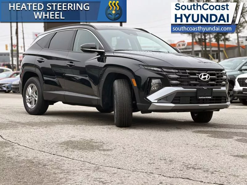 Our Tucson's trim level is Preferred. The interior emphasizes comfort and usability with heated front bucket seats featuring an 8-way power adjustable driver's seat with lumbar support, a heated leather steering wheel, dual zone automatic climate control, cloth seating surfaces, a manual tilt and telescoping steering column, a full floor console with covered storage, and practical rear seating that folds to expand cargo capacity. Technology is anchored by a 12.3-inch infotainment display with Android Auto and Apple CarPlay, Bluetooth, BlueLink connected services, real time traffic, wireless phone connectivity, turn by turn navigation, multiple USB inputs, adaptive cruise control, smart device remote start, proximity key with push button start, remote keyless entry, and a comprehensive driver information center. Safety performance is supported by Forward Collision Avoidance Assist with pedestrian, cyclist, and junction turning detection, Lane Keeping Assist with departure warning, Blind Spot Collision Warning, Rear Cross Traffic Collision Avoidance Assist, Driver Monitoring Alert, a rear view monitor, multiple front, side, rear, and curtain airbags including an airbag occupancy sensor, side impact beams, stability control, traction control, child safety locks, and a tire pressure monitoring system. This vehicle has been upgraded with the following features: Heated Seats, Heated Steering Wheel, Adaptive Cruise Control, Remote Start, Lane Keep Assist, Collision Mitigation.