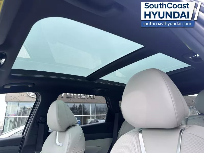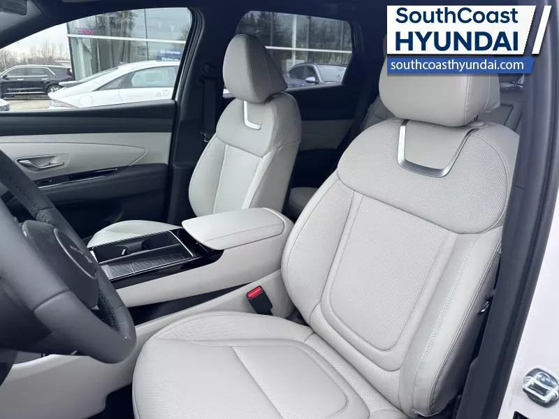 Our Tucson Hybrid's trim level is Ultimate. The cabin emphasizes comfort and technology with heated and ventilated front bucket seats, leather trim, a heated steering wheel, dual-zone automatic climate control, a head-up display, integrated navigation, wireless phone connectivity, and a premium 8-speaker Bose audio system. A panoramic glass sunroof with a power sunshade is incorporated early into the interior experience and complements the spacious seating configuration, smart key access, adaptive cruise control, memory settings, and extensive storage solutions. Safety is comprehensive with blind-spot warning, rear cross-traffic avoidance, forward collision-avoidance assist, lane keeping assist, multiple airbags including rear side-impact protection, a tire-pressure monitoring system, and advanced parking sensors integrated into a full surround-view monitoring suite. This vehicle has been upgraded with the following features: Leather Seats.