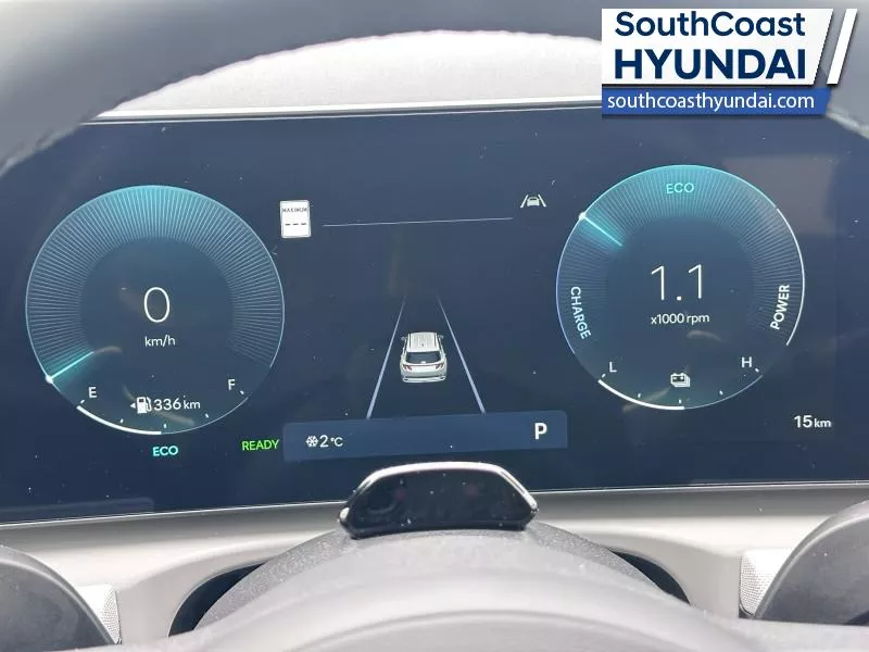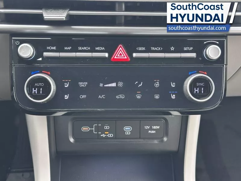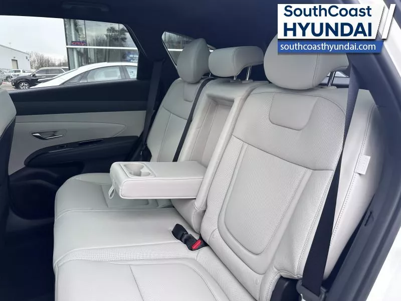 Our Tucson Hybrid's trim level is Ultimate. The cabin emphasizes comfort and technology with heated and ventilated front bucket seats, leather trim, a heated steering wheel, dual-zone automatic climate control, a head-up display, integrated navigation, wireless phone connectivity, and a premium 8-speaker Bose audio system. A panoramic glass sunroof with a power sunshade is incorporated early into the interior experience and complements the spacious seating configuration, smart key access, adaptive cruise control, memory settings, and extensive storage solutions. Safety is comprehensive with blind-spot warning, rear cross-traffic avoidance, forward collision-avoidance assist, lane keeping assist, multiple airbags including rear side-impact protection, a tire-pressure monitoring system, and advanced parking sensors integrated into a full surround-view monitoring suite. This vehicle has been upgraded with the following features: Leather Seats.