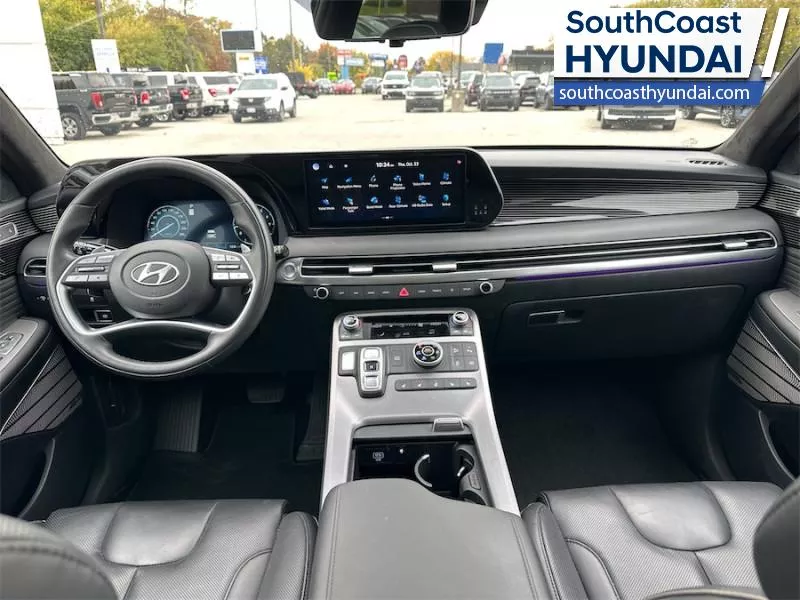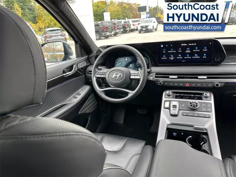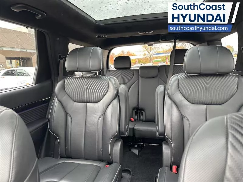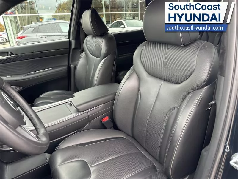 Our Palisade's trim level is Ultimate Calligraphy 7-Passenger. With luxury features like a heads up display, a two row sunroof, and heated and cooled Nappa leather seats, this Palisade Ultimate Calligraphy proves family friendly does not have to be boring for adults. This trim also adds navigation, a 12 speaker Harman Kardon premium audio system, a power liftgate, remote start, and a 360 degree parking camera. This amazing SUV keeps you connected on the go with touchscreen infotainment including wireless Android Auto, Apple CarPlay, wi-fi, and a Bluetooth hands free phone system. A heated steering wheel, memory settings, proximity keyless entry, and automatic high beams provide amazing luxury and convenience. This family friendly SUV helps keep you and your passengers safe with lane keep assist, forward collision avoidance, distance pacing cruise with stop and go, parking distance warning, blind spot assistance, and driver attention monitoring. This vehicle has been upgraded with the following features: Leather Seats.