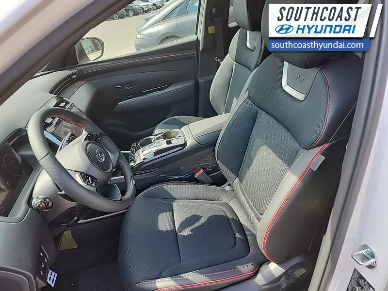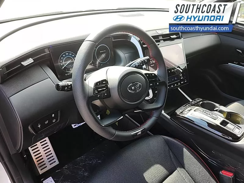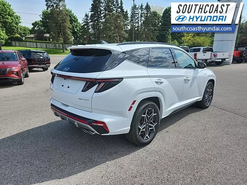 Our Tucson Hybrid's trim level is N-Line. This Tucson Hybrid N-Line trim adds on exterior trim upgrades and offers amazing features, including an automatic full-time all-wheel drive system, an express open/close glass sunroof with a power sunshade, heated and ventilated leather seats with 8-way power adjustment and 2-way lumbar support, a heated leather-wrapped steering wheel, proximity keyless entry with remote start, a power-operated smart rear liftgate with proximity cargo access, and a 10.25-inch infotainment screen bundled with Apple CarPlay and Android Auto, onboard navigation with voice-activation, and a premium 8-speaker Bose audio system. Road safety is taken care of, thanks to adaptive cruise control, blind spot detection, lane keeping assist, lane departure warning, forward collision avoidance with pedestrian & cyclist detection, rear collision mitigation, driver monitoring alert, rear parking sensors, LED headlights with automatic high beams, and a rear view camera system. This vehicle has been upgraded with the following features: Leather Seats.