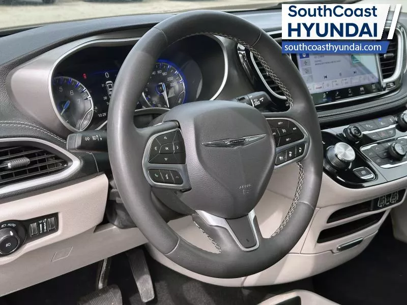 Our Pacifica's trim level is Touring L. This Pacifica Touring L steps things up with Caprice synthetic leather upholstery, Apple CarPlay and Android Auto connectivity, USB mobile projection and an 360 camera system, along with great standard features like power sliding doors, heated and power-adjustable front seats with lumbar support and cushion tilt, 2nd row captain's chairs with 60-40 split bench 3rd row seats, a heated TechnoLeather leatherette steering wheel, adaptive cruise control, proximity keyless entry with remote engine start, and a power tailgate for rear cargo access. Additional features also include a 10.1-inch infotainment screen powered by Uconnect 5, dual-zone front climate control, blind spot detection, Park Assist rear parking sensors, lane keeping assist with lane departure warning, and forward collision warning with active braking. This vehicle has been upgraded with the following features: Apple CarPlay, Android Auto, 360 Camera, Synthetic Leather Seats, Heated Seats, Heated Steering Wheel, Power Liftgate.