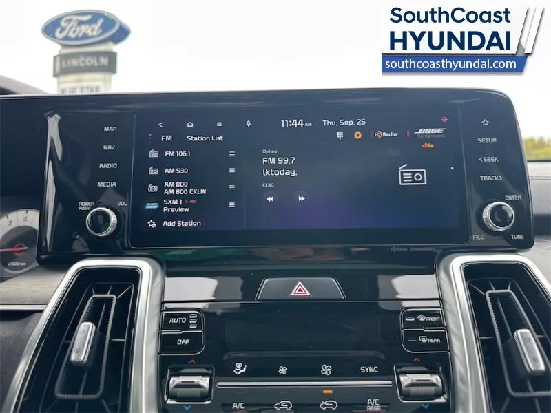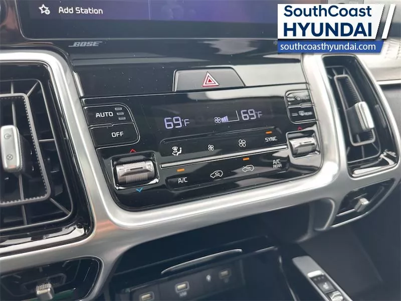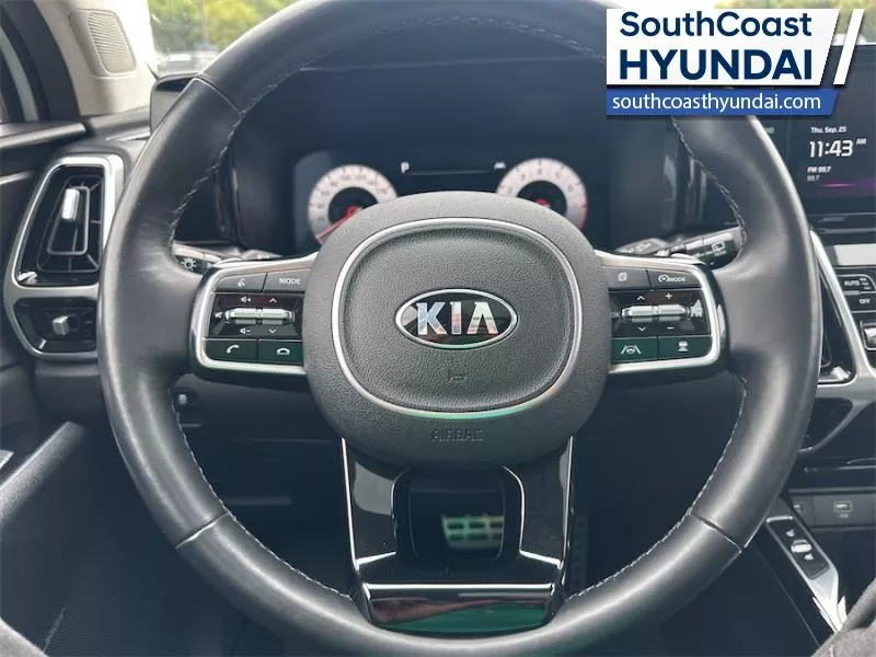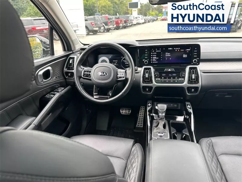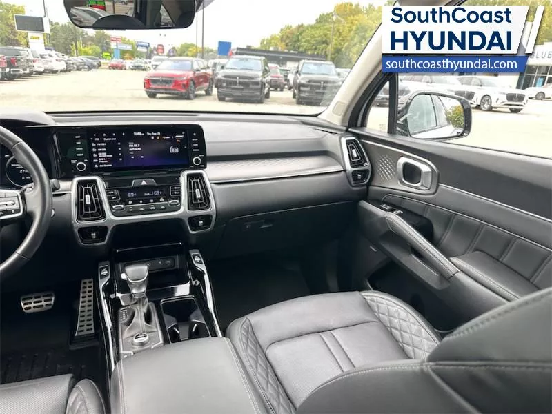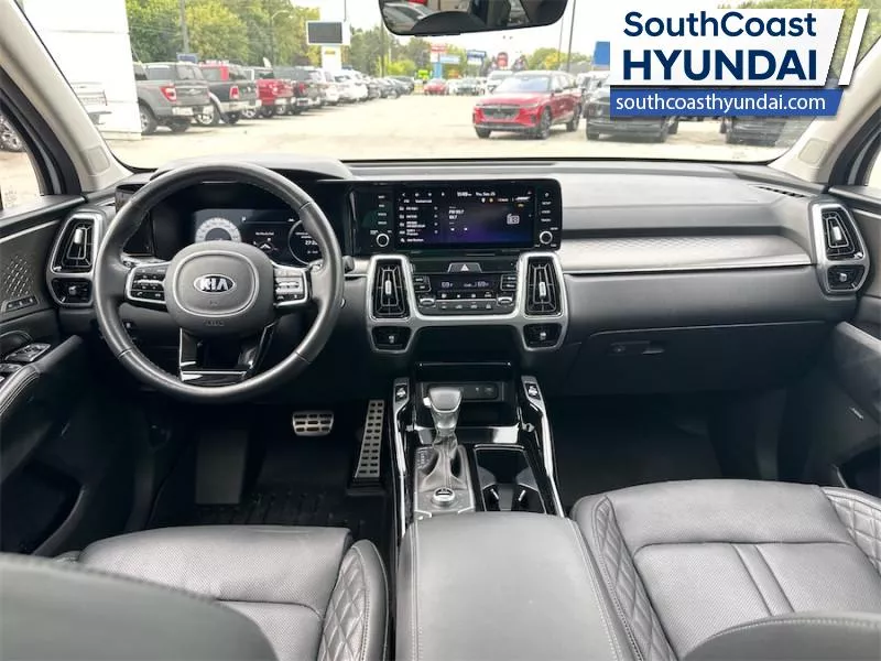 Our Sorento's trim level is SX w/Black Leather. This all wheel drive Sorento is full of style and convenience with accented alloy wheels, chrome exterior trim and automatic LED lighting accents. The tech and style continue on the inside with a larger 10 inch touchscreen with navigation, Android Auto, Apple CarPlay, heated seats, remote keyless entry, collision mitigation and lane keep assist. This SX trim also has an efficient motor, a power sunroof, front fog lamps, distance pacing cruise control with stop and go cruise control, a power liftgate, premium cooled - leather seats and a heated steering wheel. You will also get heads up display, a BOSE premium stereo, proximity keys with push button start, dual zone front HVAC with separate rear HVAC controls, parking sensors, blind spot assistance and much more. This vehicle has been upgraded with the following features: Leather Seats, Heads Up Display, Navigation, Cooled Seats, Sunroof, Bose Premium Audio, Power Liftgate.