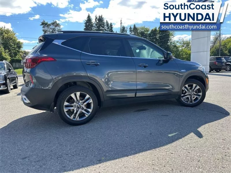 Our Seltos's trim level is EX. This Seltos EX comes with even more comfort and safety features including sunroof, heated Sofino seats, a heated leather steering wheel, a proximity key with remote start, automatic air conditioning, collision mitigation, and lane keep assist. This family SUV ensures your ride will be connected with modern features including Android Auto and Apple CarPlay. It also comes with a driver selectable transmission, alloy wheels, automatic headlamps, and fog lamps. This vehicle has been upgraded with the following features: Sunroof, Heated Steering Wheel, Leather Seats, Heated Seats, Apple Carplay, Android Auto, Blind Spot Detection.