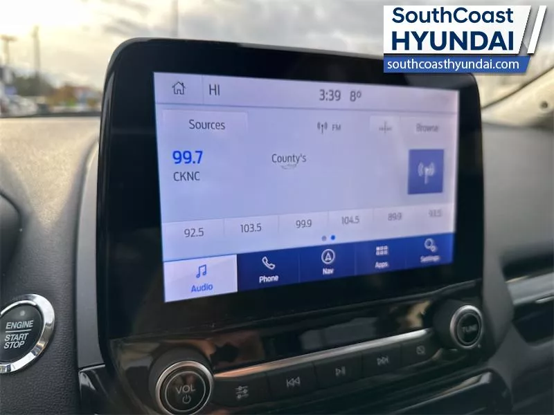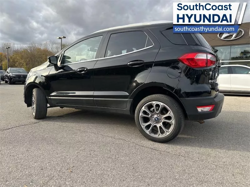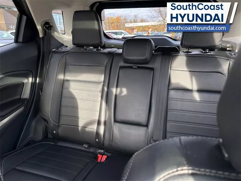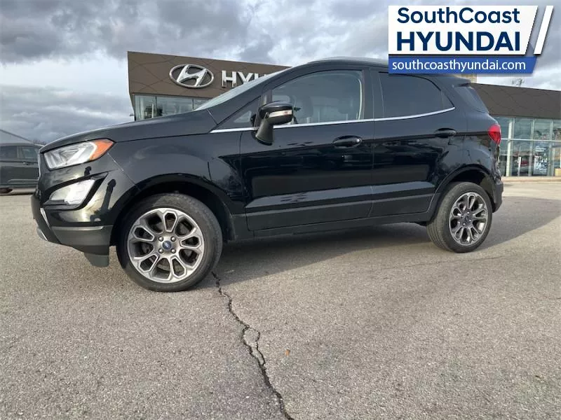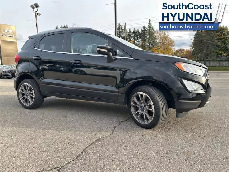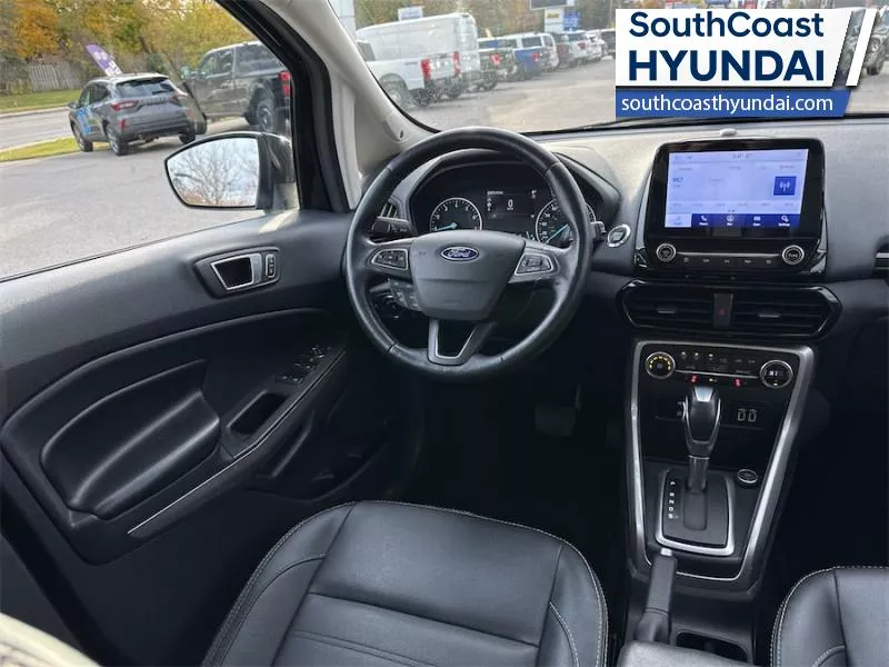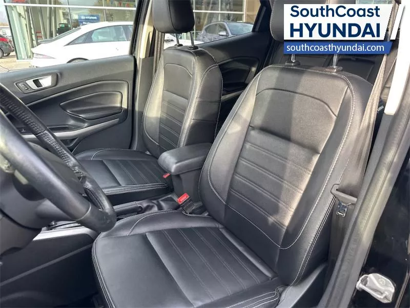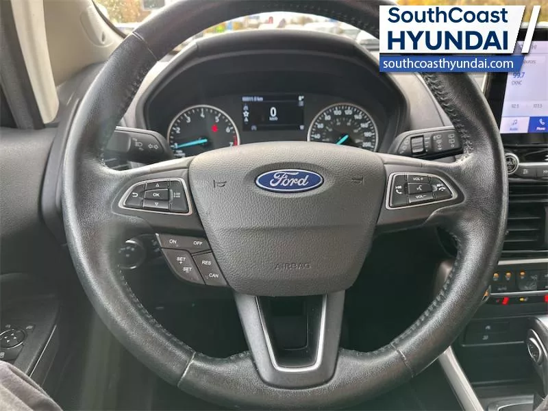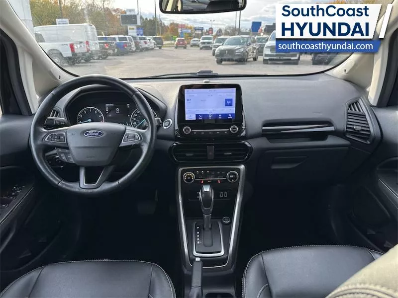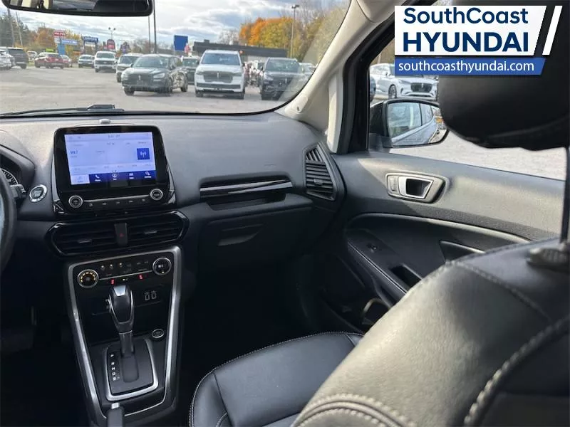 Our EcoSport's trim level is Titanium. Stepping up to this premium EcoSport Titanium is a great choice as it comes with plenty of upscale features like exclusive dark aluminum wheels, a power sunroof, sport tuned suspension, a premium 9 speaker Bang & Olufsen audio system featuring SYNC 3 with a larger touchscreen, streaming audio, navigation, Apple CarPlay and Android Auto. You will also get Ford's intelligent four-wheel drive, a power driver seat, a heated leather steering wheel, smart device remote engine start, SiriusXM radio, FordPass Connect 4G LTE, a proximity key with push button start and premium ActiveX heated seats. Additional features include automatic climate control, Ford Co-Pilot360 including blind spot detection and cross traffic alert, a 60/40 split rear seats, and a rear view camera with rear parking sensors. This vehicle has been upgraded with the following features: Navigation, Sunroof, Remote Start, Heated Steering Wheel, Heated Seats, Premium Audio, Proximity Key.