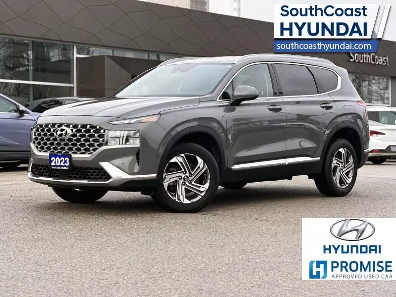 Refinement wrapped in ruggedness, capability married to style, and adventure ready attitude paired to a comfortable drive. These things make this 2023 Santa Fe an amazing SUV. If you need a ready to go SUV that makes every errand an adventure and makes every adventure a journey, this 2023 Santa Fe was made for you. This SUV has 73,615 km and is a Certified Pre-Owned vehicle. It's Hampton Grey Metallic in colour. It has a 8 Speed Automatic transmission and is powered by a 191HP 2.5L 4 Cylinder Engine. And it's got a certified used vehicle warranty for added peace of mind.