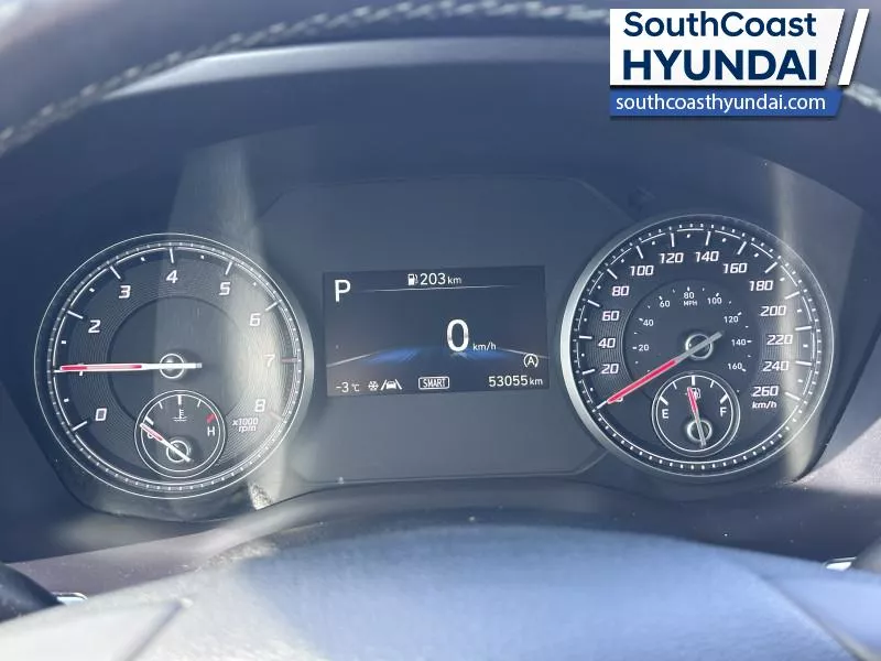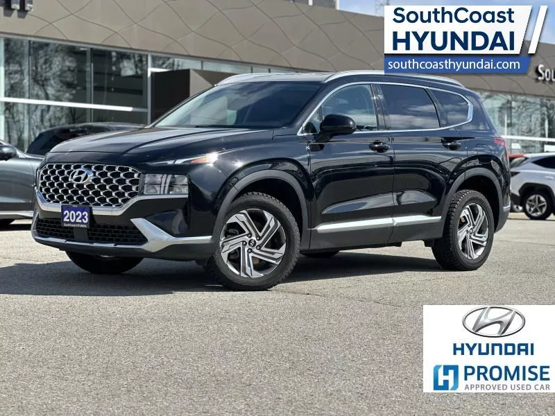 Refinement wrapped in ruggedness, capability married to style, and adventure ready attitude paired to a comfortable drive. These things make this 2023 Santa Fe an amazing SUV. If you need a ready to go SUV that makes every errand an adventure and makes every adventure a journey, this 2023 Santa Fe was made for you. This SUV has 53,063 km and is a Certified Pre-Owned vehicle. It's Black in colour. It has a 8 Speed Automatic transmission and is powered by a 191HP 2.5L 4 Cylinder Engine. And it's got a certified used vehicle warranty for added peace of mind.