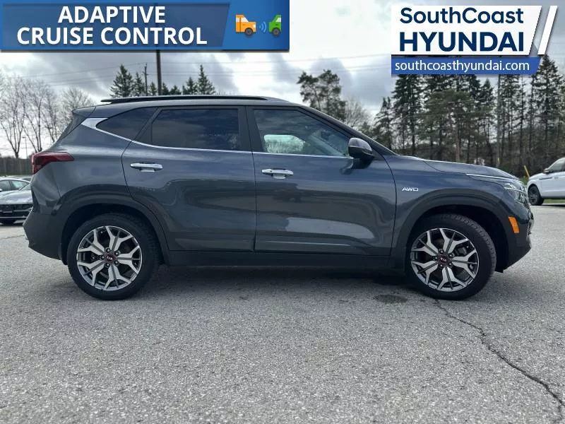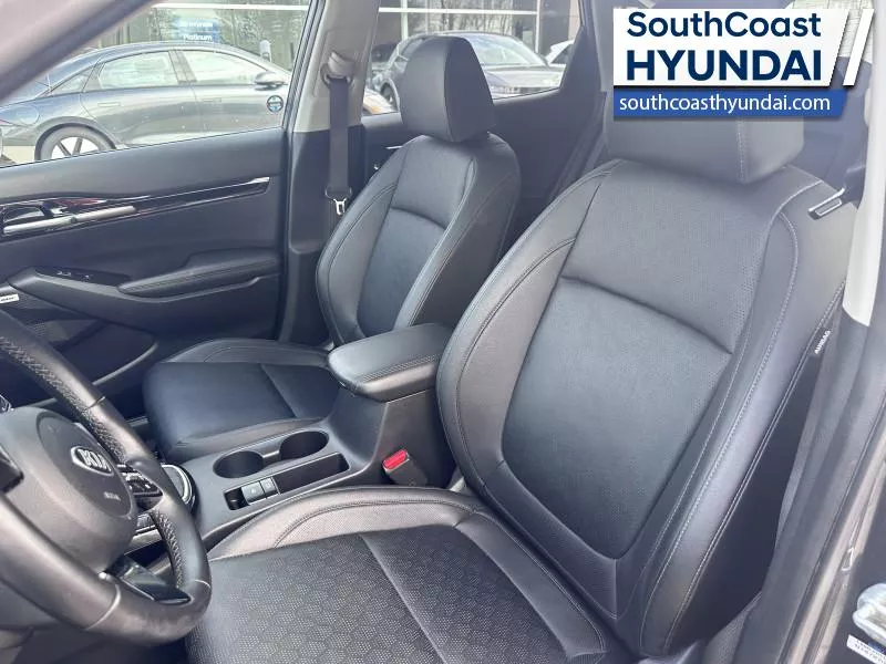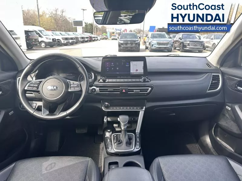 Our Seltos's trim level is SX Turbo. This SX Turbo upgrades to a larger turbo engine and comes with a gorgeous 10.25 inch touchscreen with Android Auto, Apple CarPlay, heads up display, heated and cooled seats, blind spot warning, unique alloy wheels, heated power side mirrors with turn signals, and LED lighting with fog lamps. You also get navigation, sunroof, chrome grille accents, heated steering wheel, proximity key, Sofino leather seats, automatic climate control, remote start, adaptive cruise with stop and go, collision mitigation, and lane keep assist plus much more This vehicle has been upgraded with the following features: Head Up Display, Cooled Seats, Navigation, Premium Sound System, Sunroof, Lane Keep Assist, Leather Seats.